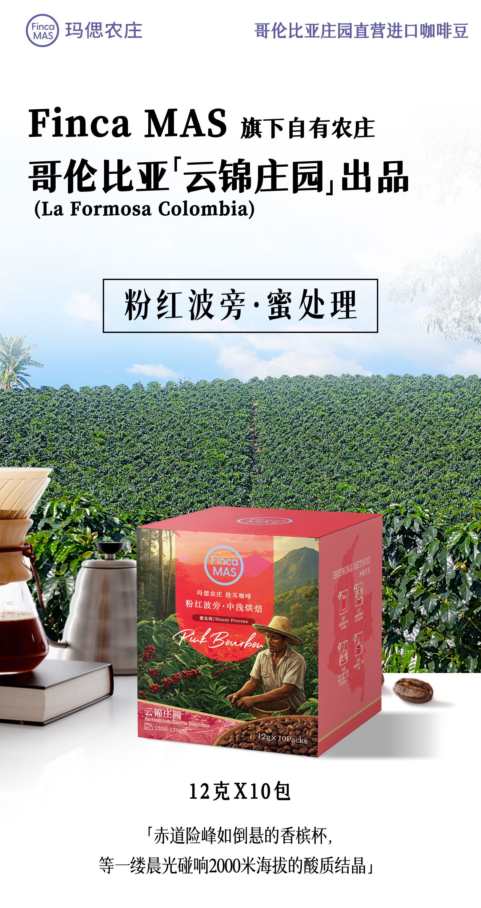 Finca MAS 尊享咖啡挂耳礼盒(瑰夏水洗+粉红波旁蜜处理)共10片